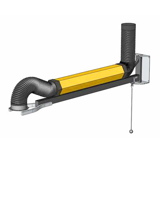 El Extensor NEC-2 es un brazo de extensión montado en la pared. Se usa para aumentar el alcance de un brazo de aspiración para cubrir áreas de trabajo muy grandes y/o múltiples. El NEC-2 está provisto de un sistema HandyStop para bloquear la base en la posición deseada (5 posibilidades). El Extensor NEC-2 se puede ampliar con otros 2 metros más para lograr un alcance de 4 m.