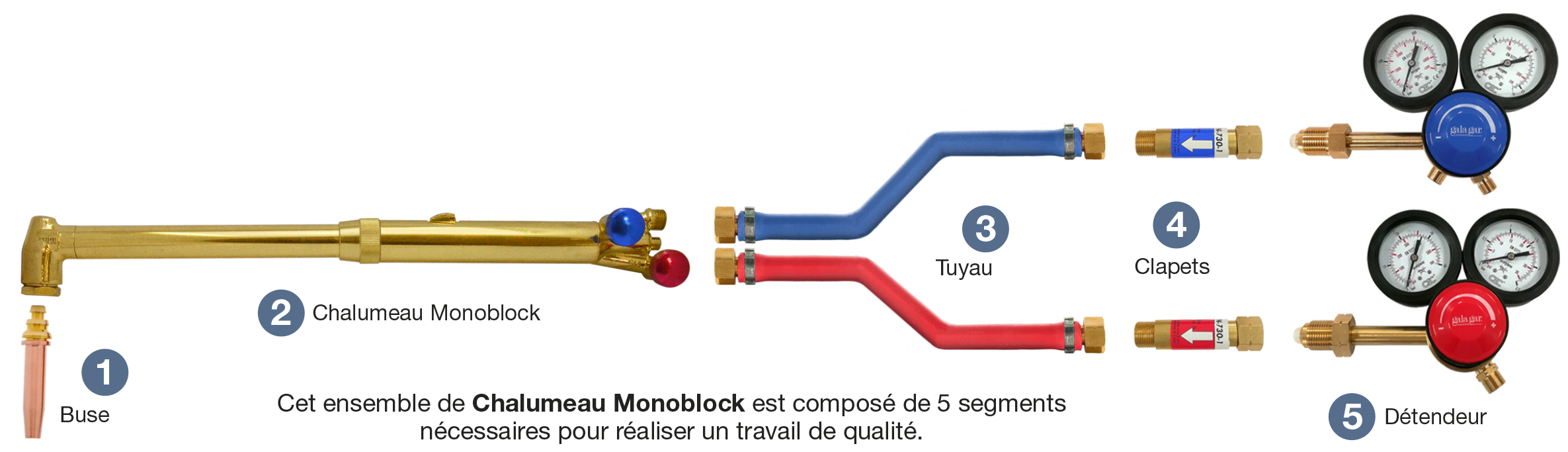 Chalumeau coupeur monobloc pour couper des aciers jusqu’à 300 mm. avec Ox-Acetylène/propane avec buses à siège conique spécifiques sur ce modèle.